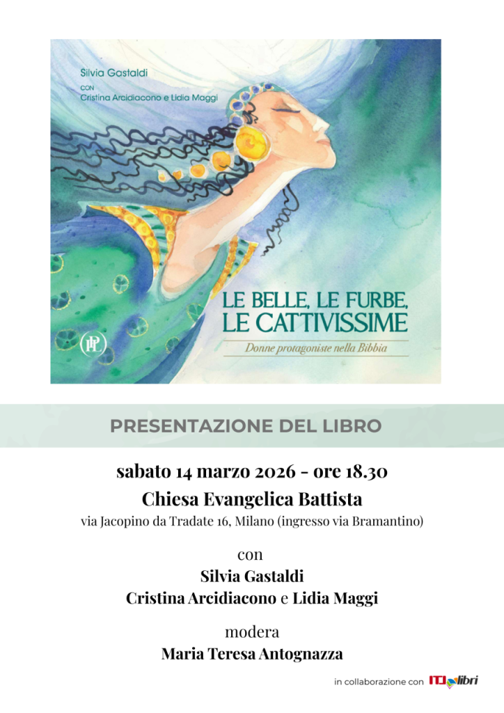 L’appuntamento per la seconda presentazione del volume Le belle, le furbe, le cattivissime è per sabato 14 marzo 2026 alle ore 18.30 alla Chiesa Evangelica Battista (via delle Ore 3, Milano), con Silvia Gastaldi, Cristina Arcidiacono e Lidia Maggi.