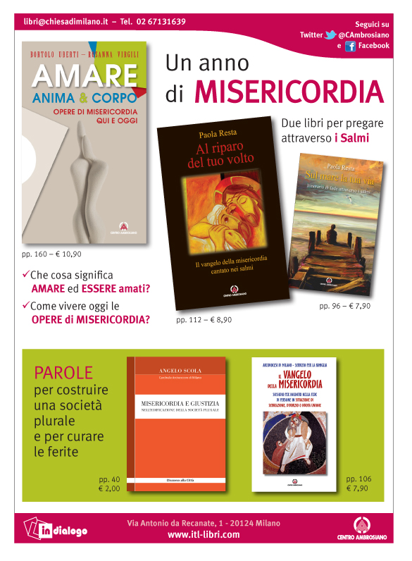 Tutte le novità per il Giubileo della Misericordia «Amare anima & corpo» – Che cosa significa AMARE ed ESSERE amati? Come vivere oggi le OPERE di MISERICORDIA? «Misericordia e giustizia» e «Il vangelo della misericordia» – PAROLE per costruire una società plurale e per curare le ferite «Al riparo del tuo volto» e «Sul mare […]