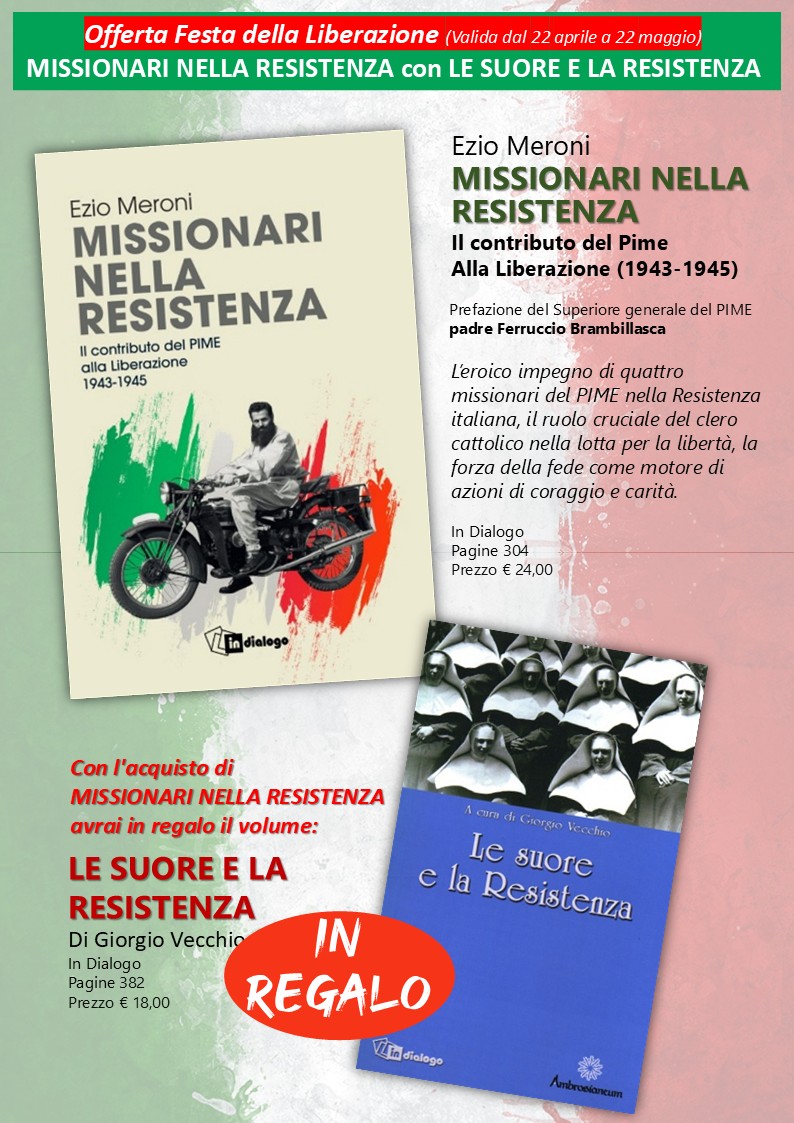In occasione del 25 aprile, la nostra casa editrice propone una promozione dedicata alla memoria della Resistenza e al contributo del mondo cattolico alla libertà dell’Italia: acquistando Missionari nella Resistenza riceverai in omaggio il volume Le suore e la Resistenza.